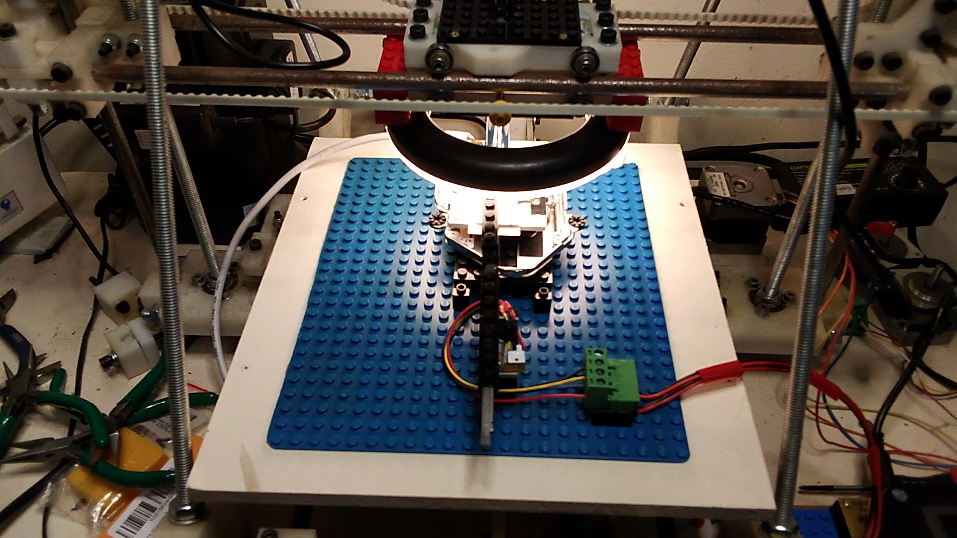 For the purposes of demonstration, experimental apparatus was put together using a sled salvaged from an old DVD drive and two other extremely inexpensive and commonly available stepper driven linear actuators. In keeping with the usual FPath experimental apparatus setup, each stepper motor under test was fitted out with LEGO blocks to simplify their mounting. The drive electronics were composed of a Steggo Electronics Module chain.