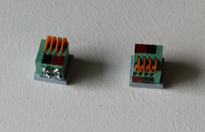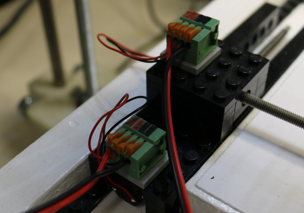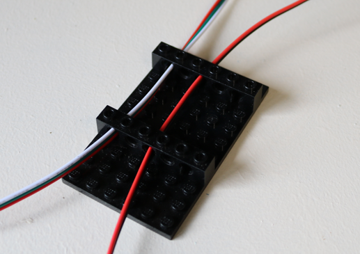 Of course, if you have wires you are going to need to connect them. Rather than twisting them together (very unsatisfactory) or soldering them (far too permanent) I obtained a few 4 way PCB spring terminal block connectors and glued them to a 2 x 2 LEGO Plate ("Plate 2 x 2 : Part 3022"). I just soldered the pins on the back so as to short each adjacent pair of pins together. This turns a PCB connector into a simple to use quick disconnect spring connector for small wires. Some red and black color coding drawn on the top in felt marker pen makes it obvious how it works. The presence of the LEGO plate makes it easily mountable anywhere it might be needed. You can see this in the second image where the connectors are mounted on top of the Steggo DC Motor modules and ride around with them.